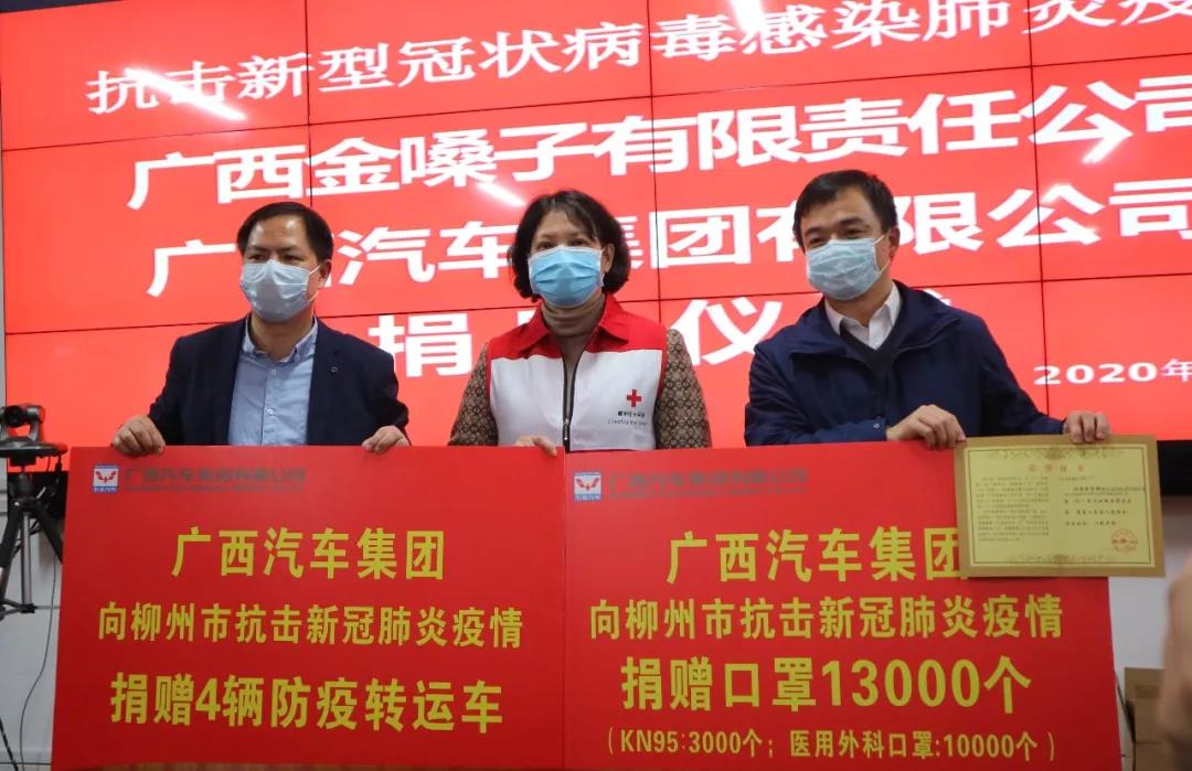 2月13日下午,廣西汽車集團(tuán)啟動第二批捐贈行動,定向捐贈給柳州市抗擊新型冠狀病毒感染肺炎疫情指揮部口罩13000個(KN95口罩3000個,醫(yī)用外科口罩10000個),統(tǒng)一配送一線醫(yī)務(wù)工作人員。同時聯(lián)合旗下柳州五菱汽車工業(yè)有限公司,將4輛五菱防疫轉(zhuǎn)運車定向捐給市人民醫(yī)院、市柳鐵中心醫(yī)院、市工人醫(yī)院、自治區(qū)龍?zhí)夺t(yī)院(各1輛),共同助力柳州市的疫情防控。